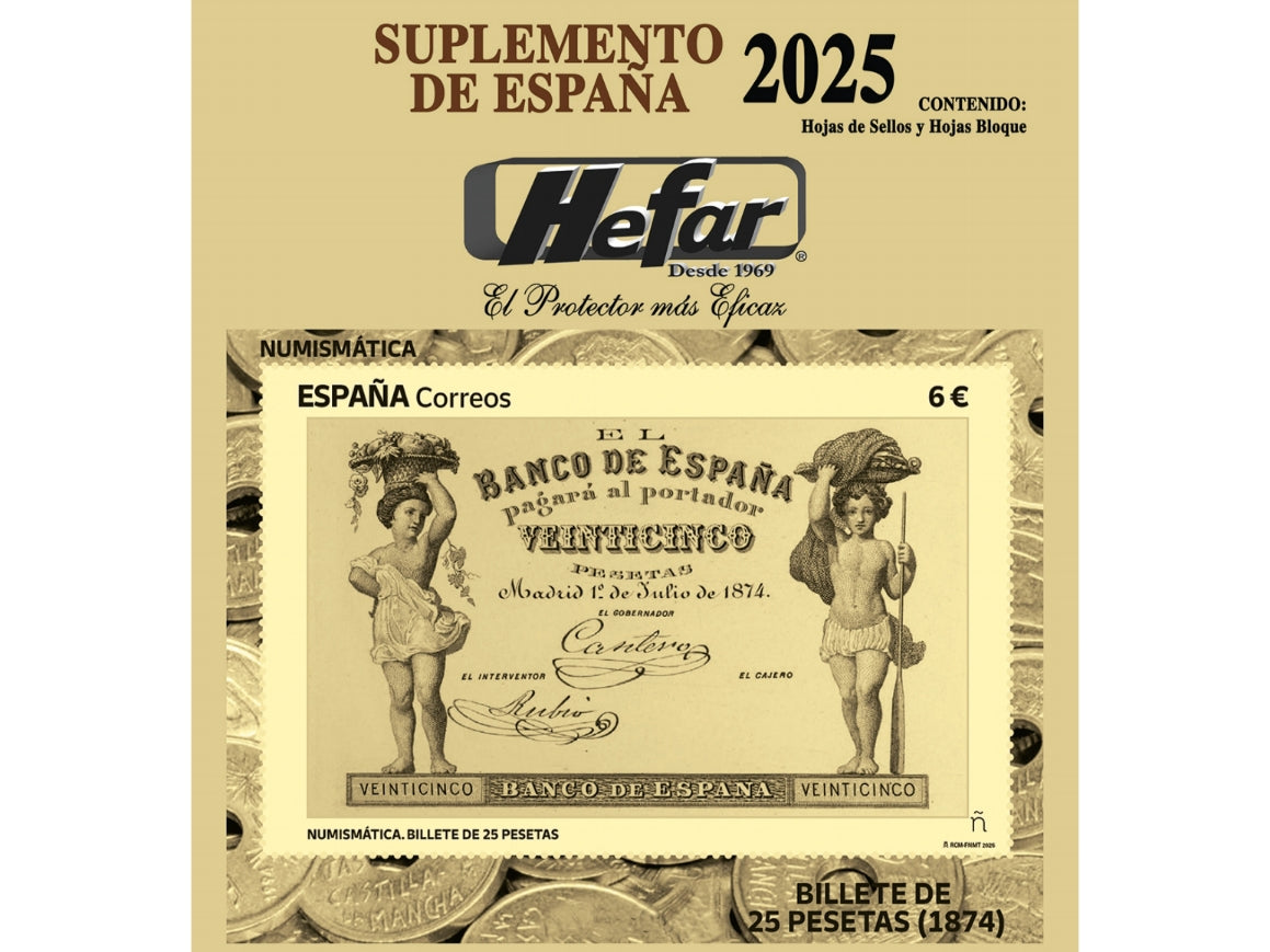 Ya están disponibles los suplementos de España y Andorra 2025 de todas las marcas presentes. Incluyendo en sus variedades, las Pruebas Oficiales, Tarjetas Postales, Sellos Procedentes de Hojas Bloque y así como los Homenajes Filatélicos.Las pueden adquirir sin montar o montados con filoestuches Hefar en Fondo Negro o Transparente.